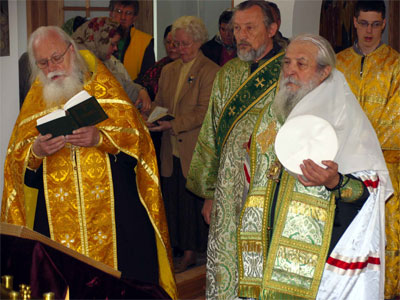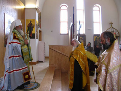 Eminence Metropolitan Laurus greets the rector, Priest Michael Fritz