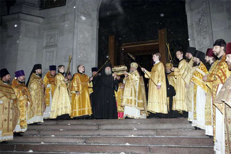 21, 2005: Moscow greets the relics at the Church of Christ the Savior.
