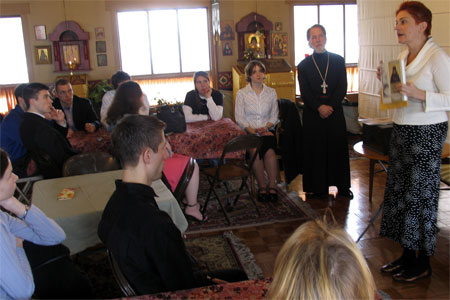 Tatiana Voyno-Yasenetskaya tells the parishioners of her ancestor.