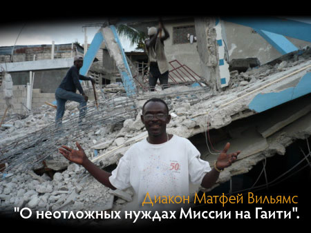 Я понимаю, что поднял множество вопросов и не предложил ответов. Сумма, необходимая для восстановления миссии баснословна, но нужда безотлагательна. Я призываю верующих щедро жертвовать на нужды миссии и пострадавших в Гаити. Пожертвования просьба посылать через Попечительский Фонд о Нуждах РПЦЗ.