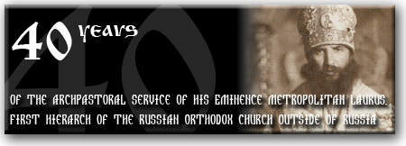 "With gratitude to God, the Russian Church Abroad is proceeding well on her salvific path. The episcopacy, the clergy, monastics and laity of our Church are worthily performing their service, each in his place, zealously forming the One Body of the Church. I bear my own cross as well as I can, thanks to my many helpers, the members of the Synod of Bishops, the episcopacy, the pious clergymen, the many thousands of believers who help me in this good work through their prayers. I would with great joy make a prostration before each of you for the fervor with which you help me. I hope that this continues forever. And if it does, then it will be easy for me to bear the service of Primate upon my shoulders. Let it always be that way, dear brother archpastors, fathers, brothers and sisters, I rely on your help and the prayers of the faithful in continuing my life.