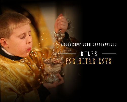 Serving as an altar boy is service to God, for it is participation in the ritual of divine services. Altar boys must remember that they are not serving a bishop or a priest, but the Lord God Himself, Who receives the service and praise of an innumerable multitude of angels, and still, by His goodness, receives the service we perform from the heart, just like the widow�s two coins in the Gospel. That is why all the duties and responsibilities taken during divine services are sanctified and honorable.