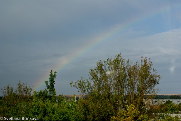 We left early, still sleepy. Vladyka Theodosius, leading the way, read the history of the head of John the Forerunner in the bus for those who had not fallen asleep during the reading of the morning prayers and the rule before Communion. The quiet words of this brief sermon was one of the most memorable of the conference. And a rainbow appeared in the sky.