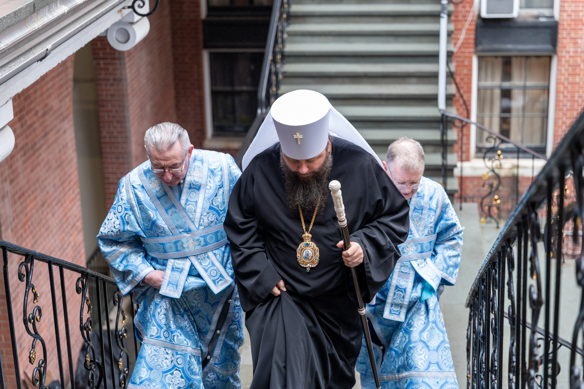 Его Высокопреосвященству сослужили: архиепископ Новограчаницко-Чикагский, митрополит Средне-Западно-Американский Лонгин (Сербская Православная Церковь); архиепископ Монреальский и Канадский Гавриил, епископ Левкийский Климент (Болгарская Православная Церковь) и епископ Иероним (Шо), а также ключарь протоиерей Андрей Соммер и соборный клир, духовенство Восточно-Американской епархии и гости в священном сане.