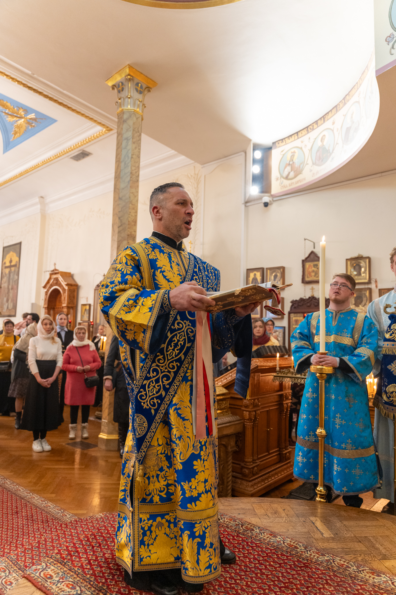 Богослужебные песнопения исполнял Синодальный хор под управлением регента В.С. Гана.