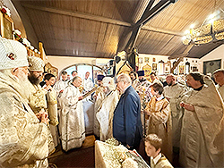 Перед Божественной литургией Преосвященный епископ Ириней был встречен у притвора храма хлебом-солью, после чего облачен в центре храма, и потом были торжественно пропеты Пасхальные часы. Кафедра была разделена с владыкой Михаилом, и литургия прошла в радостной атмосфере благодарения. После освящения Святых Даров, иподиакон Медонского прихода Михаил Арцимович был рукоположен во диакона под радостные возгласы: «Аксиос!».