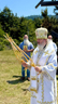 По завершении литургии духовенство и многочисленные паломники совершили крестный ход к месту упокоения первых русских поселенцев, где была совершена заупокойная лития.
