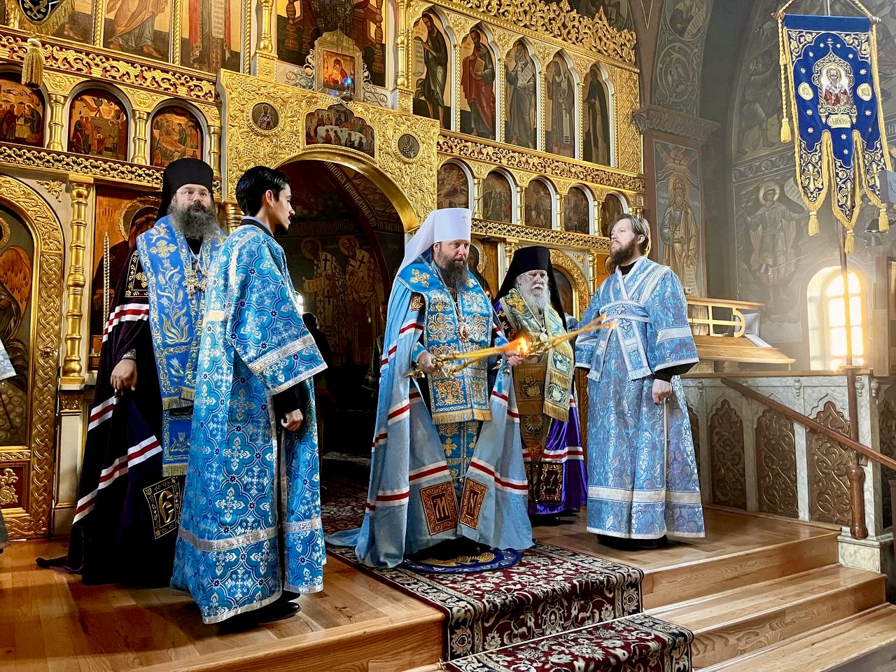 Паломничество в Свято-Троицкий монастырь в дни гражданских праздников, которыми завершается лето в США, продолжилось Божественной литургией, совершенной архиерейским чином в понедельник утром.