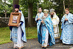 В четверг, 28 августа, в праздник Успения Пресвятой Богородицы, митрополит Восточно-Американский и Нью-Йорский Николай прибыл в Успенский женский монастырь "Ново-Дивеево", чтобы провести престольный праздник обители вместе с монашествующими, духовенством и верующими. С собой он привез для поклонения верующими ковчег с мощами святителя Тихона, Всероссийского Патриарха-Исповедника.