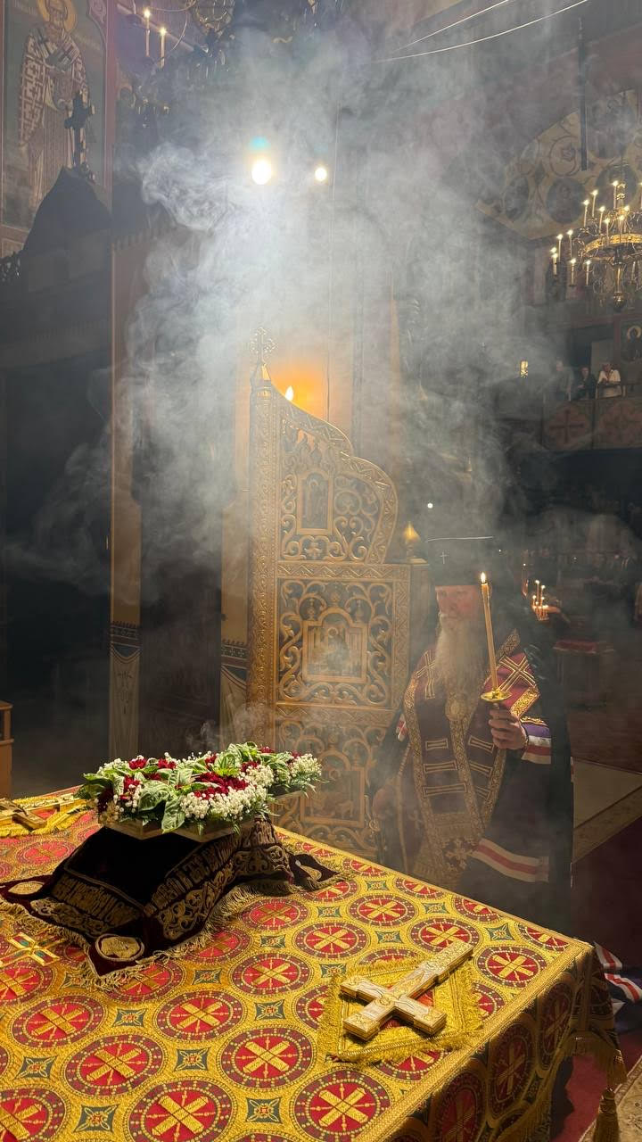 После великого славословия архиепископ Кирилл совершил чин Воздвижения Креста.
