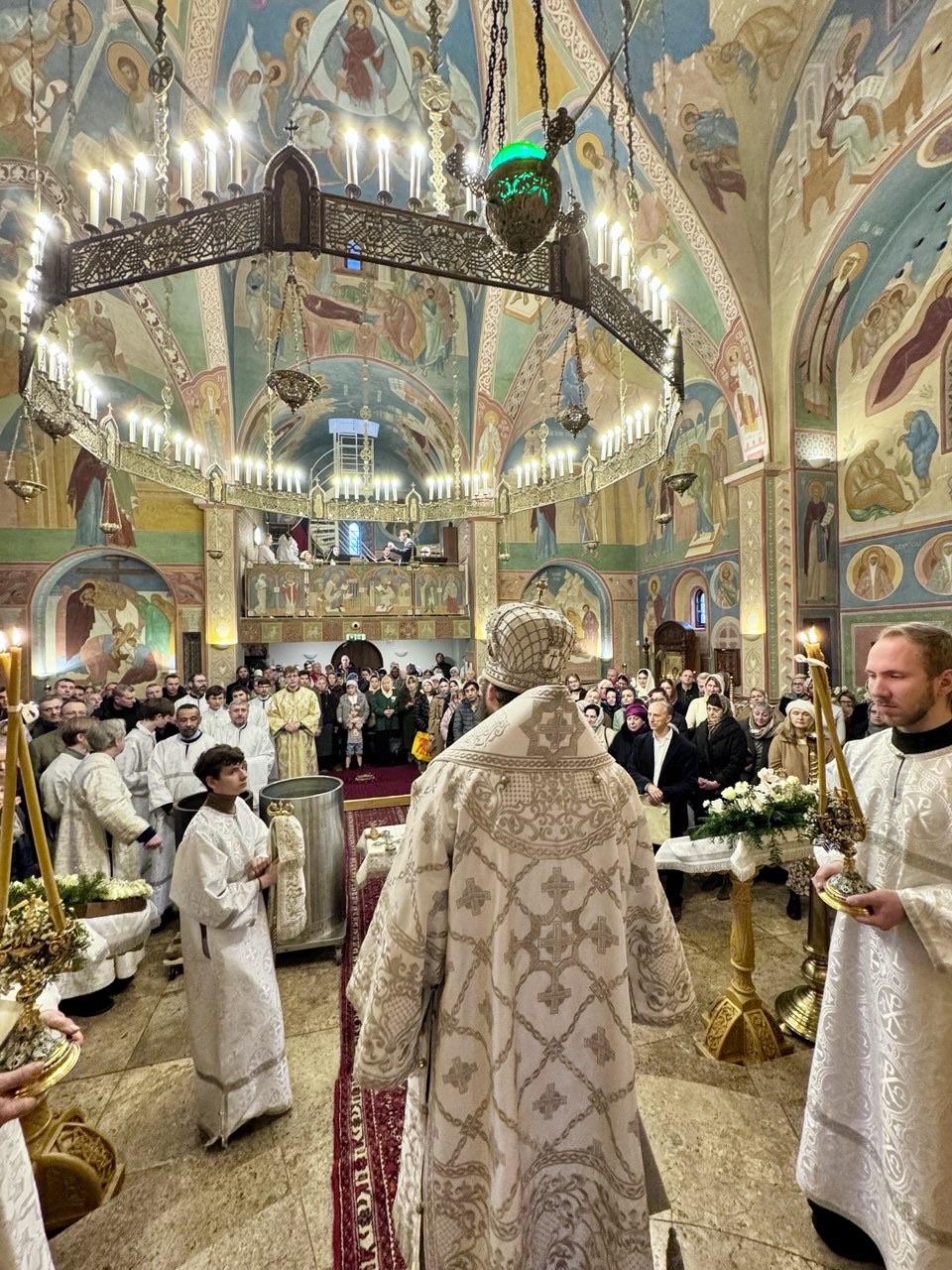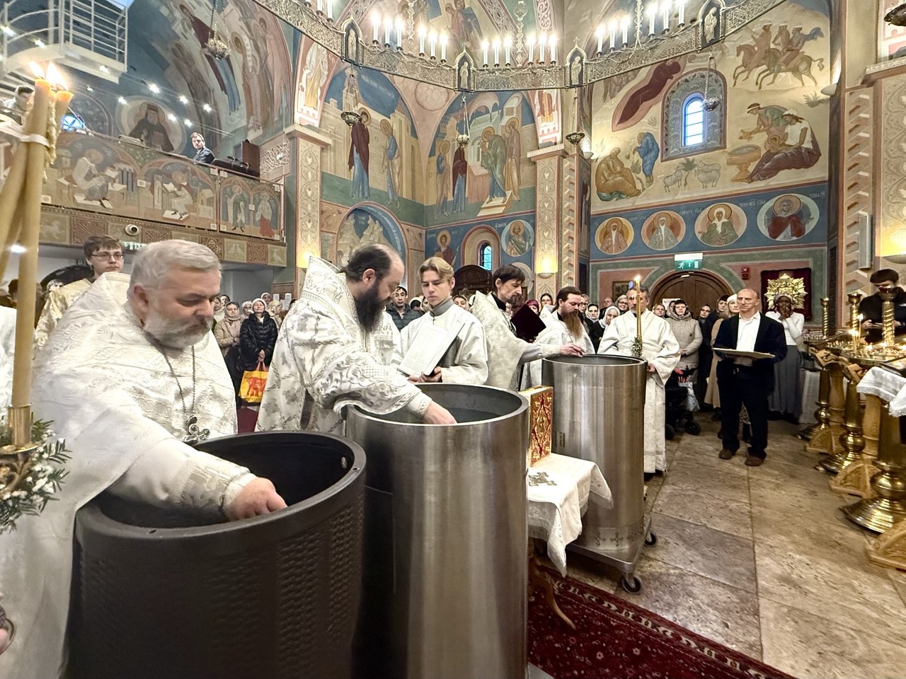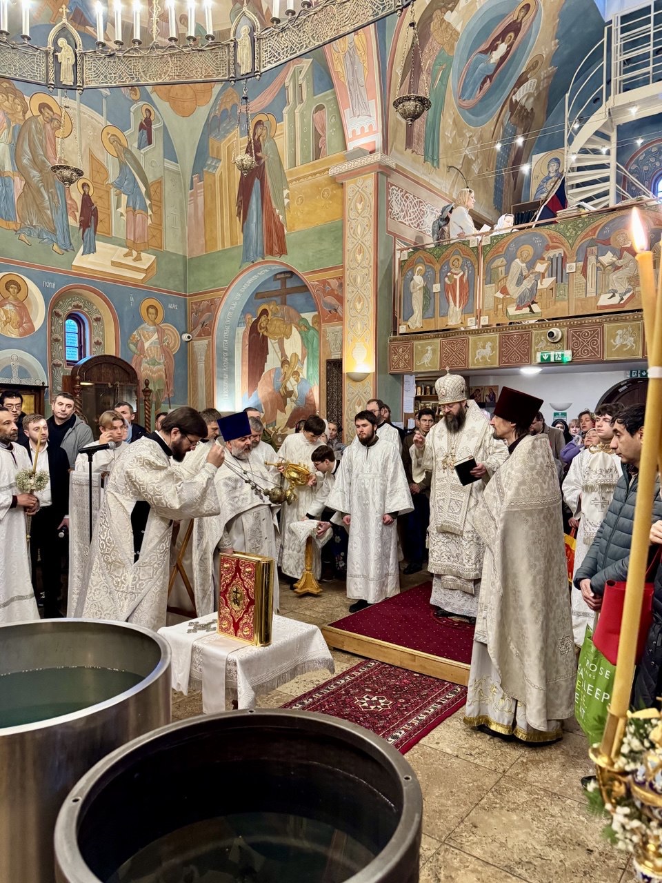 В понедельник, 19 января, в праздник Крещения Господня, епископ Лондонский и Западно-Европейский Ириней совершил Божественную литургию по чину святителя Василия Великого и Великое освящение воды в Богородице-Рождественском кафедральном соборе г. Лондона. Его Преосвященству сослужили ключарь протоиерей Виталий Серапинас и соборный клир, при большом стечении богомольцев.