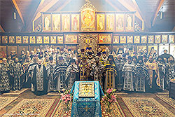 После часов и изобразительных более 50 священников и диаконов собрались, чтобы встретить Высокопреосвященнейшего митрополита Восточно-Американского и Нью-Йоркского Николая. В алтаре молилися митрополит Иона (Паффхаузен).