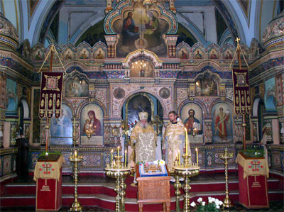 The Kursk-Root Icon in the middle of the Cathedral. His Eminence