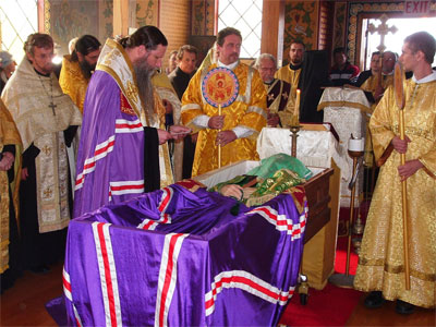 with the mantle of Bishop Alexander are Protodeacons Victor Lokhmatov