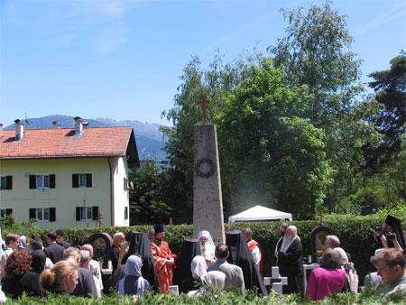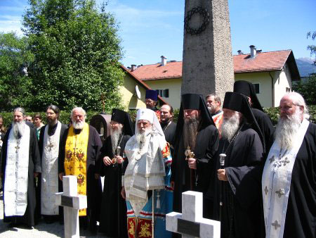 His Eminence Metropolitan Laurus with the archpastors and clergy at the monument to the Cossacks in Lientz.