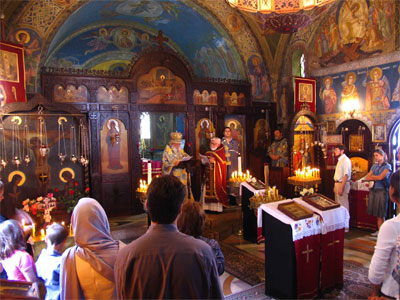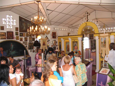 Divine Liturgy in Valencia. Serving are Hieromonk Nicholas (Perekrestov) and Protodeacon Victor Lochmatov.