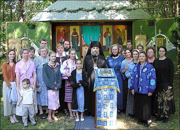 Стоял замечательный теплый осенний день, что позволило совершить богослужение по старому обычаю, в часовне на дворе. Прихожане и молящиеся, прибывшие из других приходов, были утешены присутствием на торжестве главной святыни Русской Зарубежной Церкви – чудотворной Коренно-Курской иконы Божией Матери, в честь которой и названа пустынь в Магопаке. Торжественно и умилительно пел епархиальный женский хор имени святых Жен-Мироносиц под управлением Евгении Темидис. Владыка в своем слове сравнил пение хора с пением монахинь на Святой Земле. Богослужение завершилось крестным ходом с молебным пением (фото ниже).