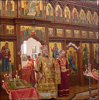 and Deacon John. Archbishop Hilarion was greeted with solemnity.