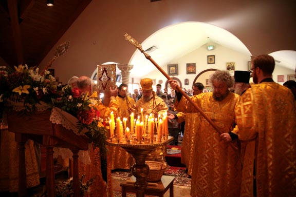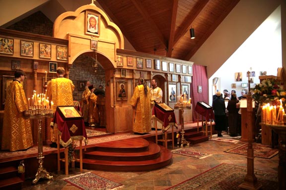 Рабочий день завершился торжественным всенощным бдением в новом просторном храме прихода преп. Марии Египетской.