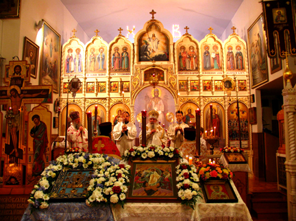 На следующий день Высокопреосвященнейший Владыка совершил Божественную литургию в кафедральном Радосте-Скорбященском соборе в г. Сан-Франциско, а накануне – всенощное бдение, в сослужении архиепископа Сан-Францисского и Западно-Американского Кирилла и епископа Кливлендского Петра, соборного духовенства и гостей в священном сане. В тот же день вечером, по случаю праздника перенесения мощей святителя Николая в Бари, Его Высокопреосвященство возглавил всенощное бдение в храме всех святых в Земле Российской просиявших в г. Бурлингейме, шт. Калифорния. На следующий день Высокопреосвященнейший Владыка возглавил здесь Божественную литургию в сослужении епископа Кливлендского Петра, настоятеля храма протоиерея Стефана Павленко, протоиерея Петра Перекрестова и приходского клира. Интересно отметить, что храм в г. Бурлинейме некогда являлся подворьем Блаженнейшего Митрополита Анастасия, скончавшегося в день праздника перенесения мощей святителя Николая 41 год тому назад.