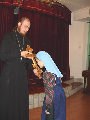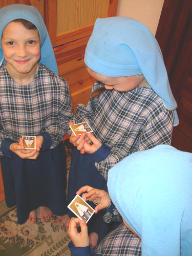 Настоящим праздником стало для всех нас, а особенно – для наших маленьких воспитанниц получение долгожданного подарка со Святой Земли. Сестры Гефсиманской обители, где пребывают мощи святых преподобномучениц Великой княгини Елизаветы и инокини Варвары, прислали в дар приюту большую святыню – крест с частицами земли с тех мест, что освящены жизнью Спасителя, а еще копии своих рисунков и множество других сувениров: икон, закладок, календарей и фотографий.