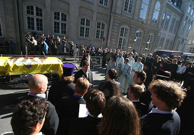 была совершена заупокойная лития. Затем саркофаг был установлен на датском