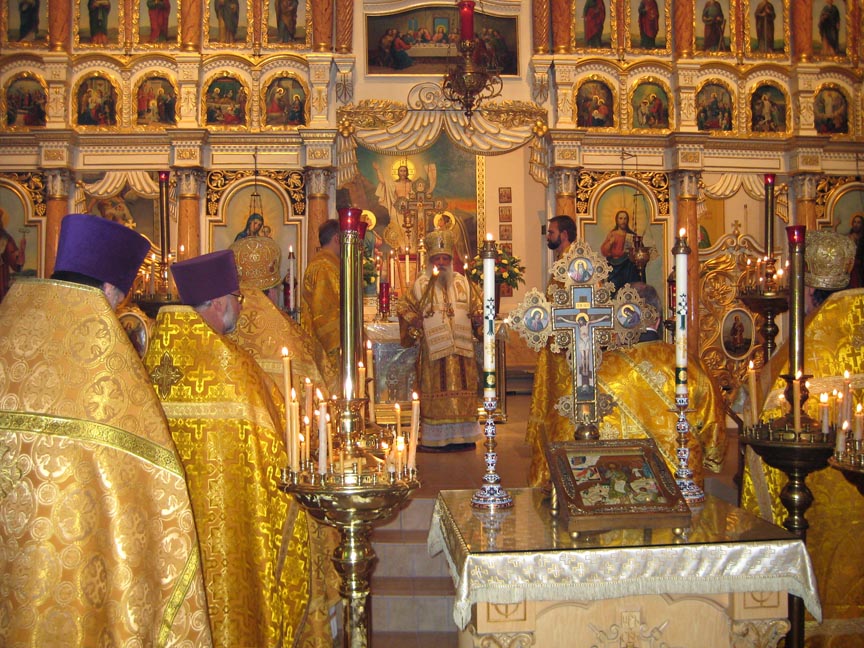 Вот мы сегодня молимся здесь в этом святом храме, где сто лет тому назад молился святитель Тихон, а священнослужителями и богомольцами были ваши, братие и сестры, предки, ваши родственники и прихожане сего храма. Мы радуемся, повторяю, что мы здесь собрались, чтобы отметить труды святителя Тихона и его собратий, и молитвенно просим их заступления и укрепления в наших трудах и стараниях для утверждения нашей Святой Православной Веры здесь и во всей вселенной.