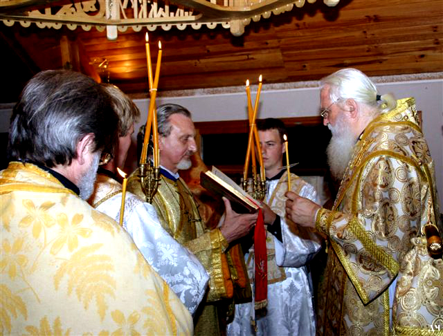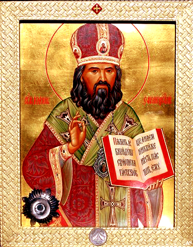 Утром этого дня Преосвященнейший Михаил прибыл из Сан-Франциско, из Храма Всех Скорбящих Радости, где находится рака с мощами Святителя, и привез частичку мощей для укрепления на иконе, что и было совершено сразу по приезде.