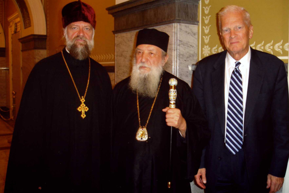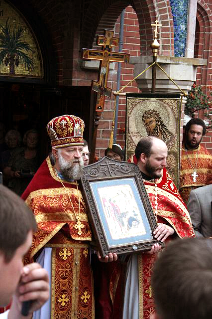 Эта возможность представилась нам на следующий день. Утром 10 сентября частным рейсом из Чикаго прибыла в Вашингтон дорогая сердцу всякого православного христианина святыня – икона Божией Матери «Державная». Чудотворную икону сопровождали Высокопреосвященнейший Исидор, митрополит Екатеринодарский и Кубанский, Преосвященнейший Евгений, архиепископ Верейский, ректор Московской Духовной Академии и семинарии, наместник московского Сретенского монастыря архимандрит Тихон (Шевкунов) и хор этой святой обители. Большой образ сразу был доставлен в Иоанно-Предтеченский собор, где святыня была встречена духовенством и верующими, и поставлена на специально для нее сооруженный аналой. Икона оставалась в храме с 10 по 13 сентября, где бесконечным потоком к ней притекали верующие многих православных приходов в районе большого Вашингтона. Явление иконы в нашем храме воспринималось прихожанами, как особая милость Божия, как событие, которое никто из нас раньше не мог себе представить.