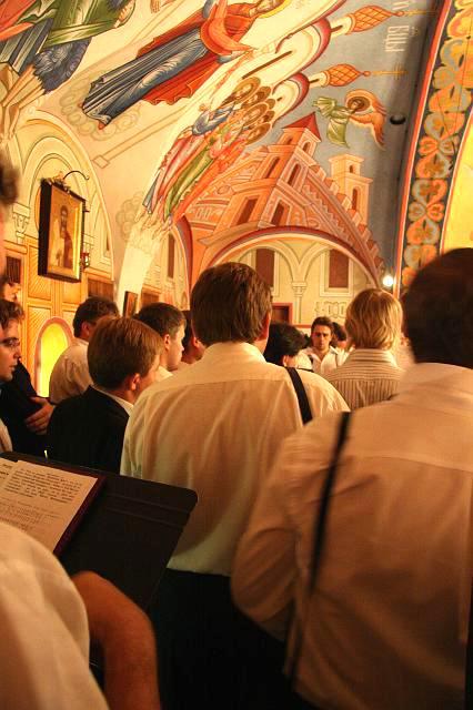 Вслед за акафистом началась всенощная, за которой пел Сретенский монастырский хор под управлением талантливейшего 30-летнего маэстро Никона Степановича Жилы. С первых же песнопений молодые певцы показали свое хоровое и музыкальное мастерство и умение соединить свои голоса в один. Но самое главное в том, что их пение было в высшей степени молитвенным.