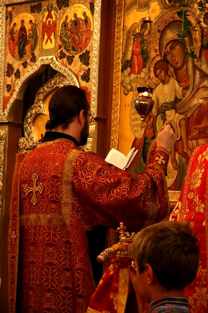 11 сентября праздник Усекновения честной главы святого Иоанна Предтечи начался в 8 утра малым освящением воды. В 9:30 все архиереи и духовенство числом 30 встретили высокопреосвященнейшего Первоиерарха Русской Зарубежной Церкви митрополита Лавра, который возглавил Божественную литургию. На малом входе Его Высокопреосвященство возложил на настоятеля собора митру за активную пастырскую деятельность, благоустройство и благоукрашение собора и кладбищенской часовни. Помимо этого митрофорный протоиерей Виктор Потапов вот уже много лет достойно представляет нашу Русскую Зарубежную Церковь в столице США, ревностно неся звание настоятеля в нашем столичном приходе.