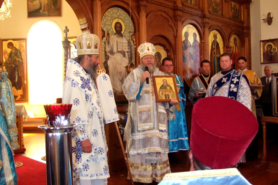 Перед литугией в Соборе, Протоиерей Михаил Бойков привез Митрополита Онуфрия и Архиепископа Евгения в храм Всех Святых Земле Русской, который при Епархиальном Управлении, для поклонения и молитвы перед Св. Чудотворной Иконой Ахтырския Божией Матери, которая по указу Синода РПЦЗ временно хранится в Австралии. Также, Протоиерей Михаил Бойков, ключарь сего храма с благословением настоятеля, Владыки Илариона, выделил Высокопреосвященным частицы подрясника Святителя Иоанна Шанханского.