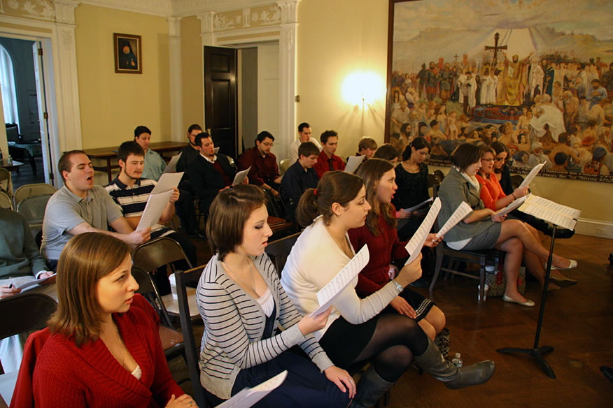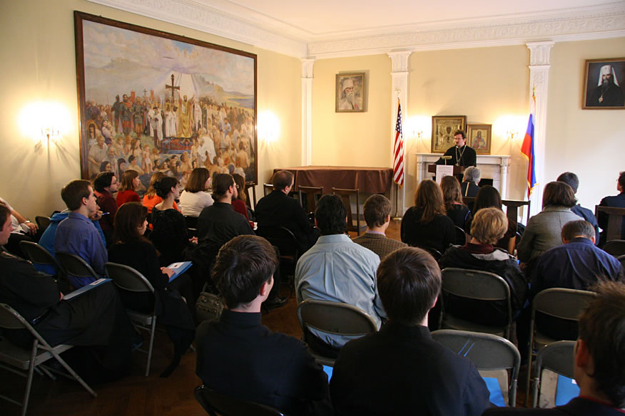 На симпозиум собрались студенты Свято-Троицкой семинарии в Джорданвилле, молодые люди из Нью-Йорка и других городов США. Каждый из них, как правило, активно участвует в жизни своего прихода, несет то или иное послушание в храме.