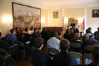 Участники симпозиума посетили консульство Российской Федерации в Нью-Йорке и беседовали с Генеральным консулом Сергеем Викторовичем Гармониным. Российский дипломат рассказал о том, чем занимаются консульские учреждения нашей страны за рубежом, особо остановившись на вопросах сохранения культурного наследия и защиты прав соотечественников. С. В. Гармонин обратил внимание на добрые плоды, которые приносит сотрудничество дипломатических миссий России и Церкви в условиях, когда единство русского Православия стало свершившимся фактом. Генеральный консул России ответил на вопросы собравшихся.