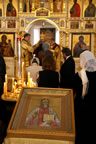 Специально в храм из Знаменского Синодального собора были принесены икона праведного Иоанна Кронштадтского и его ряса, а также камилавка, привезенная из Серафимовской церкви г. Си-Клифа (Нью-Йорк) протодиаконом Павлом Волковым.