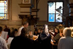 Затем состоялся торжественный прием в честь епископа Илариона в приходском зале. Отец настоятель еще раз выразил свою радость и благодарность за совместное богослужение с владыкой и попросил его обратиться к прихожанам со словом. Епископ Иларион рассказал о своей епархии, о своей деятельности, а также сказал несколько слов о молитве. Он обратил внимание слушателей на то, что молитва никогда не должна быть механической, но всегда должна быть теплой, сердечной. Желающим научиться исскуству молитвы, – в своем слове владыка особенно подчеркнул, что молитва это исскуство, – епископ Иларион посоветовал познакомиться с "Добротолюбием".