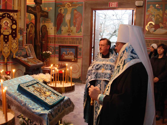 11 декабря к нам прибыла Одигитрия Русского Зарубежья, Курская-Коренная икона Божией Матери.  Это было первое за несколько лет посещение чудотворным образом нашего города.  В течение восьми дней народ Божий имел возможность возносить свои посильные молитвы перед великой святыней.  Икона побывала в Вашингтоне, Балтиморе и их окрестностях и посетила многих больных, принося немощным отраду и утешение.