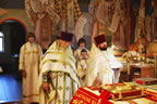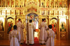 Его Высокопреосвященству сослужили игумен Иоанн (Маграмм), иерей Александр Бочагов и настоятель иерей Вадим Арефьев.