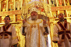 В тот же день вечером на всенощном бдении в синодальном Знаменском соборе Высокопреосвященнейший Митрополит Иларион вышел на полиелей в сослужении игуменов Иоанна (Маграмм) и Тихона (Амельченья) при протодиаконе Николае Мохове.