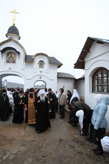 «Хвалите отроцы Господа, хвалите имя Господне!» — возгласил Владыка Ювеналий и с многократным пением стихов Псалмопевца «Буди имя Господне благословенно от ныне и до века, от восток солнца и до запад хвально имя Господне», духовенство, клирошане и богомольцы последовали за своим архипастырем в храм.