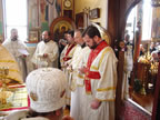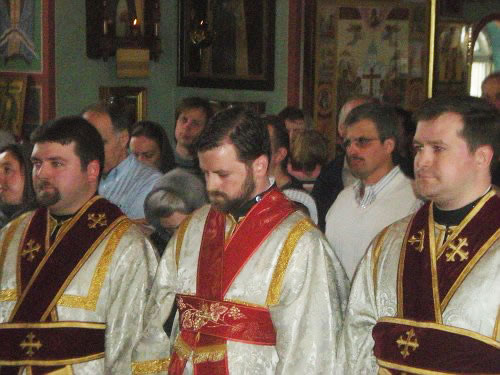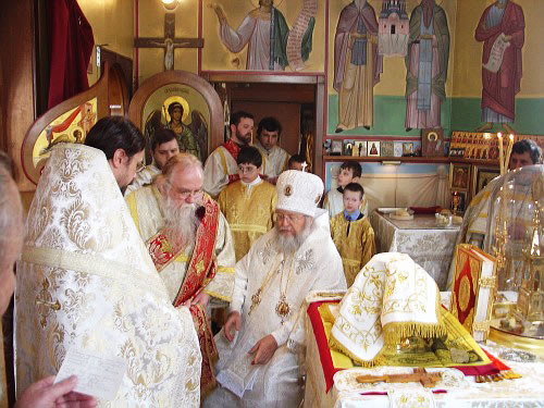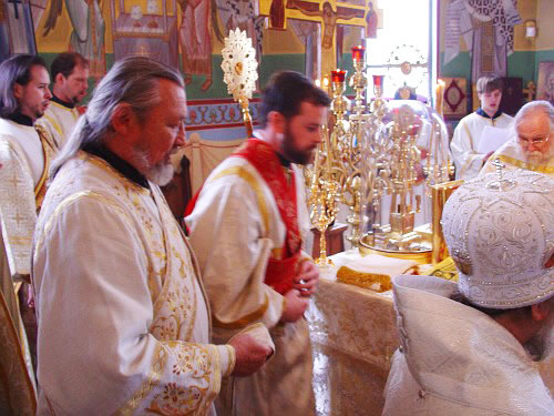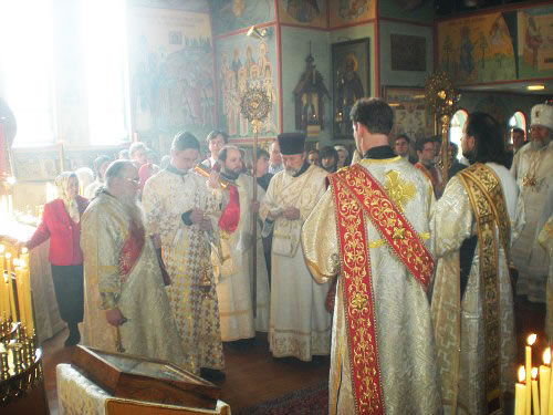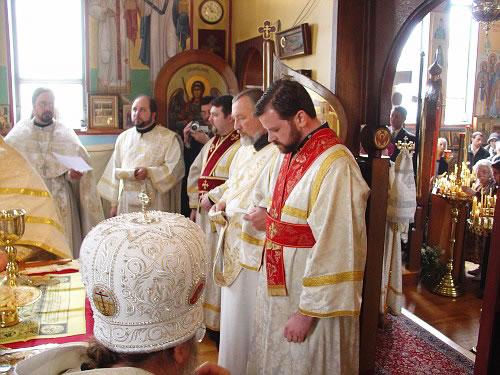 В субботу вечером Владыка возглавил Всенощное бдение, а в воскресенье утром – Божественную литургию. Владыке сослужили иерей Виктор Болдевскуль, настоятель Богоявленского прихода, иерей Алексий Аедо из Чили, иерей Брендан Кроули (на всенощной), при протодиаконах Иосифе Ярощук, Фоме Реске и Николае Дробот, и диаконах Александре Ярощук, Николае Ольховском иЕвгении Каллаур. На малом входе диакон Александр был возведен во протодиаконы. Митрополит совершил и две хиротонии. После Великого входа протодиакон Фома был рукоположен в иерейский сан, а после Евхаристического канона Его Высокопреосвященство совершил диаконскую хиротонию иподиакона Виктора Гансон. Интересно отметить, что в этот же день иеромонах Иоасаф (Маклеллан), который вырос в Богоявленском приходе и был при нем чтецом и регентом, был возведен в сан архимандрита в Мюнхене.