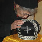 Затем все прикладывались к святыне и были помазаны святым елеем. В храме было много детей, и людей всех возрастов, которые благоговейно, с земными поклонами, под пение тропаря прикладывались к митре владыки Иоанна. После акафиста было также проведено собрание строительного комитета.