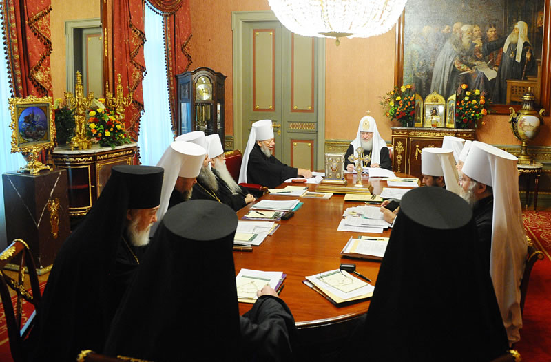 Highslide JS Заседание Священного Синода Русской Православной Церкви состоялось 6 октября в Москве. Открывая заседание, Святейший Патриарх Кирилл отметил, что это первый случай, когда в очередном заседании Священного Синода участвует Первоиерарх Русской Зарубежной Церкви. "Это свидетельствует о том, что процесс, заложенный подписанием Акта о каноническом общении, развивается и, Богу содействующу, будет развиваться и дальше", - сказал Предстоятель Русской Православной Церкви.