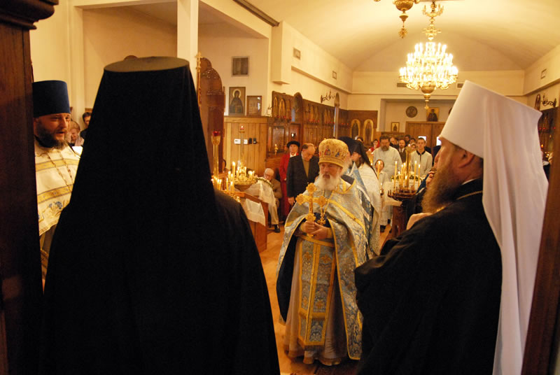 В субботу, 11 декабря, митрополит Астанайский и Казахстанский Александр и архиепископ Наро-Фоминский Юстиниан, Управляющий Патриаршими приходами в США, совершили в Серафимовском храме Божественную литургию, по случаю празднования на нашем приходе 90-летия Русской Зарубежной Церкви. Их Высокопреосвященствам сослужили протоиерей Михаил Протопопов, администратор Австралийско-Новозеландской епархии; протоиерей Виктор Цешковский, клирик Ново-Коренной Пустыни в Магопаке и заместитель настоятеля церкви Новомучеников и Исповедников Российских в Бруклине; настоятель Серафимовского храма протоиерей Серафим Ган, игумен Вениамин (Королев), наместник Коренной Пустыни Курской епархии; протоиерей Сергий Лукьянов, секретарь Восточно-Американской епархии; протоиерей Андрей Соммер, ключарь Знаменского синодального собора; протоиерей Евгений Гончаренко, игумен Никодим (Басляников), помощник архиепископа Юстиниана; иеромонах Роман (Красовский), регент объединенного хора Свято-Троицкого монастыря и при нем семинарии; и иерей Александр Анчутин, настоятель Покровской церкви в Глен-Кове, при протодиаконах Павле Волкове и Игоре Паначеве, диаконах Николае Ольховском и Евгении Каллауре. На богослужении присутствовала чудотворная Курско-Коренная икона Божией Матери.
