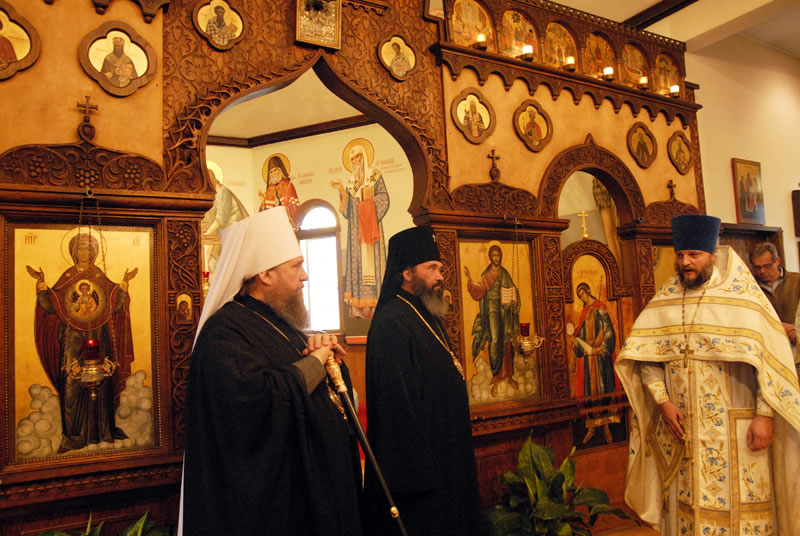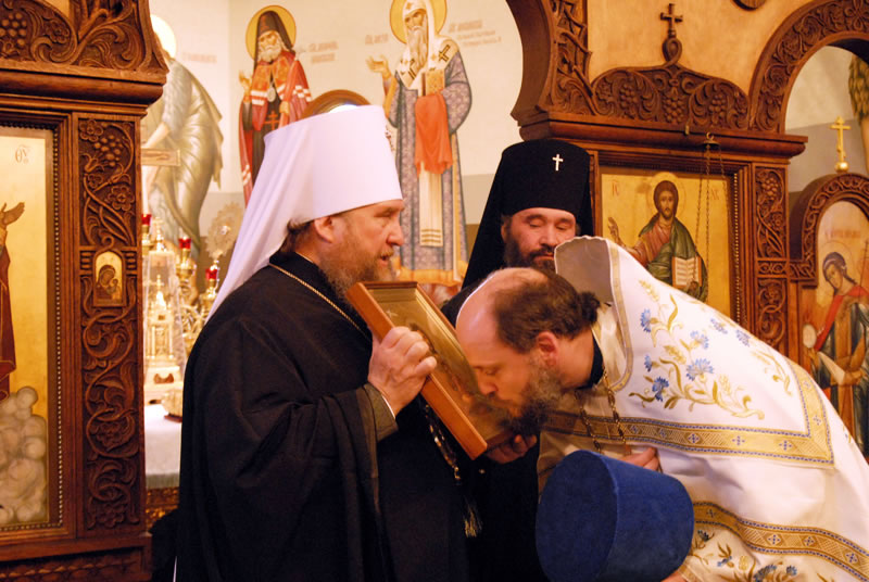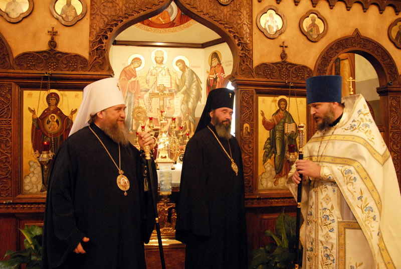 По окончании Божественной литургии Высокопреосвященнейших гостей приветствовал настоятель храма протоиерей Серафим Ган, который преподнес митрополиту Александру и архиепископу Юстиниану новые посохи на добрую и молитвенную память об их посещении, пожелав, чтобы их "архипастырские жезлы всегда были утешением и помощью для врученных им клир и пасомых". В свою очередь митрополит Александр преподнес приходу икону святого благоверного князя Александра Невского, держащего Феодоровскую икону Божией Матери. В своем архипастырском слове владыка Александр вспомнил первое свое посещение Серафимовского прихода в 1989 г., когда настоятелем церкви был протопресвитер Митрофан (Зноско-Боровский; + 2002 г.), ставший впоследствий епископом Бостонским, викарием Восточно-Американской епархии.