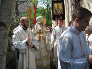 По возвращении в храм многолествовали Святейшему Патр. Кириллу, Митр. Илариону, Первоиерарху Р.З.Ц., Еп. Михаилу, настоятелю храма, всему освященному собору, сестричеству и всем прихожанам святого храма сего, ... после чего была пропета «Вечная память» бывшим настоятелям этого прихода.