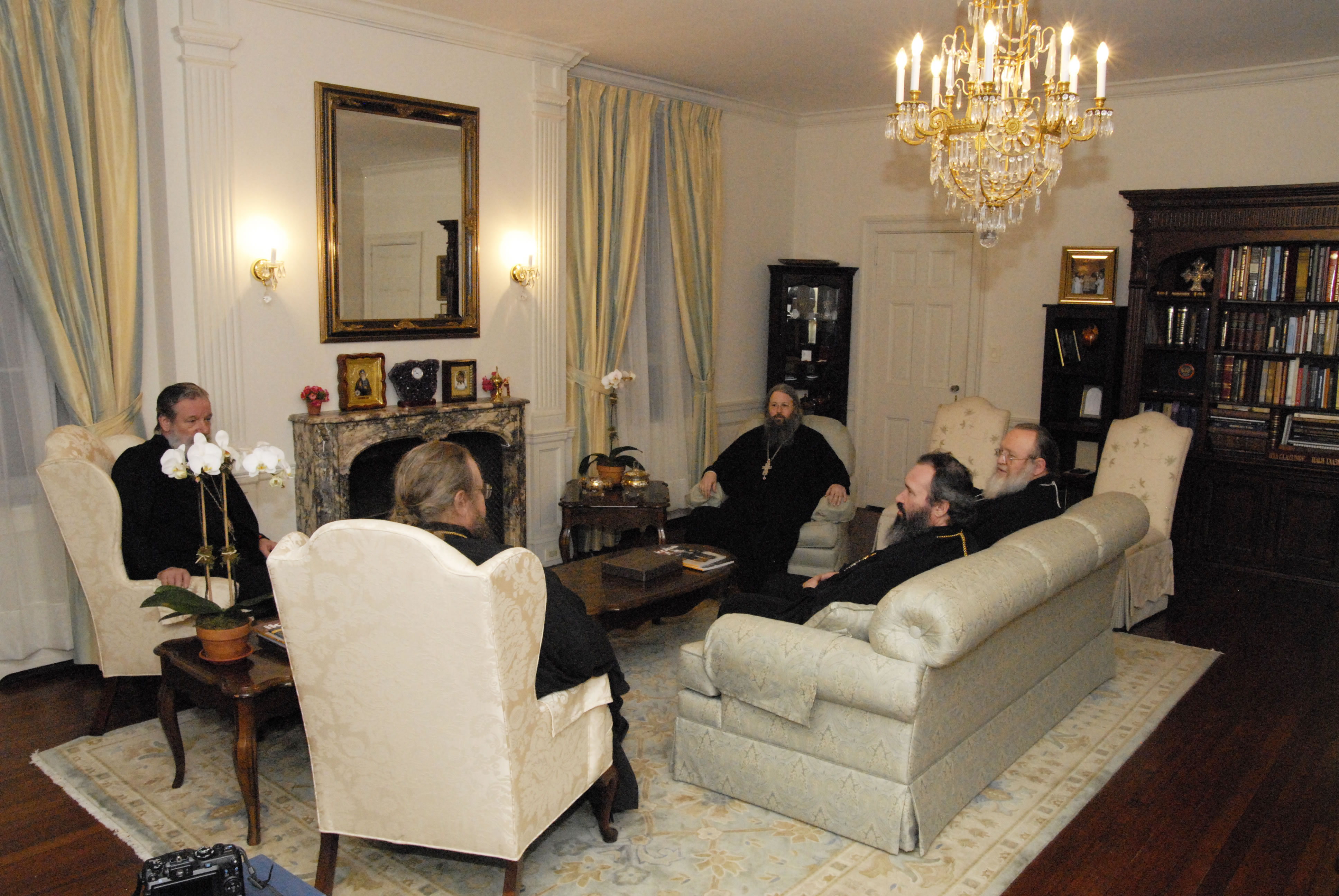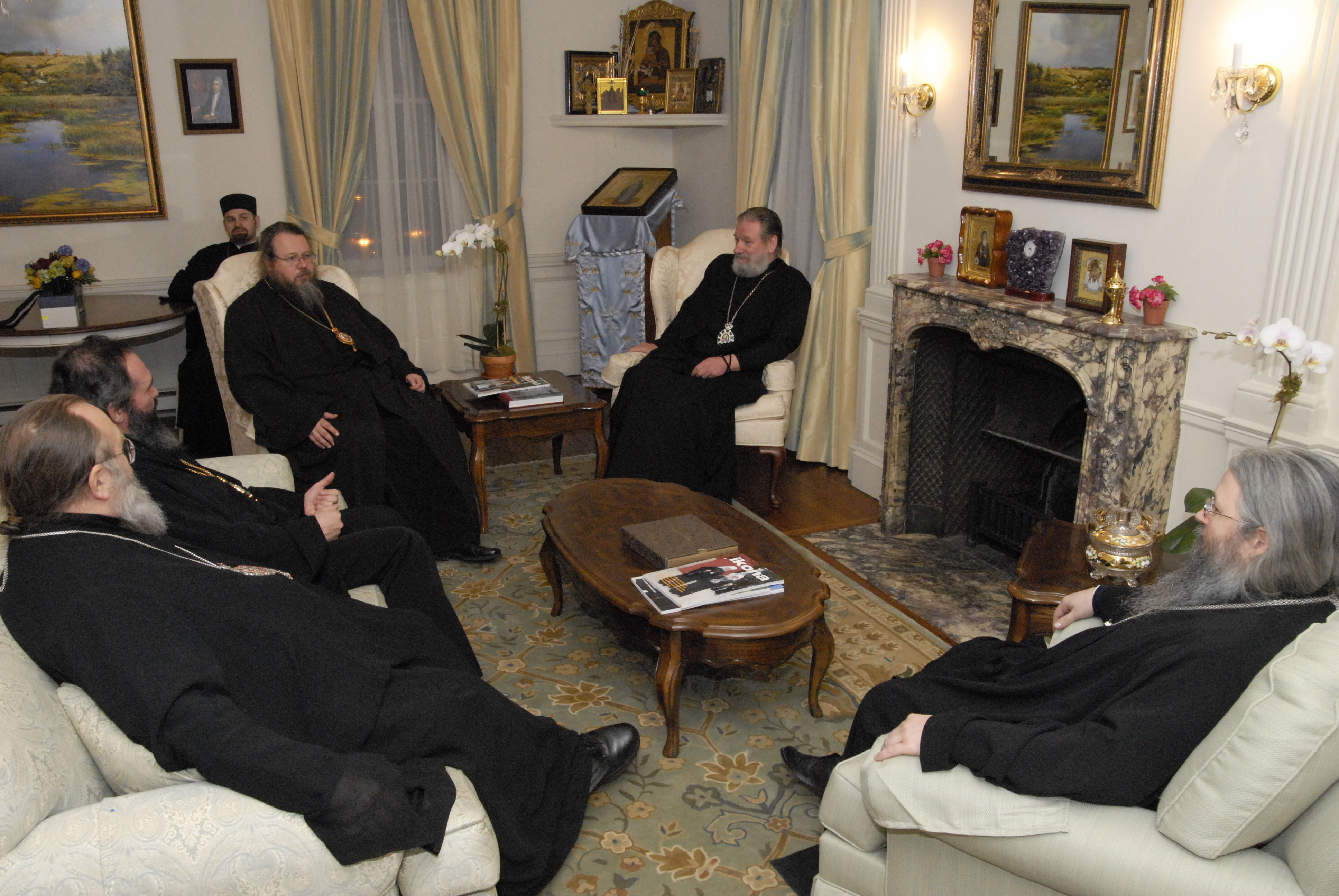 В воскресенье, 27 февраля, Его Высокопреосвященство, митрополит Восточно-Американский и Нью-Йоркский Иларион,по просьбе пребывающего в пределах Русской Зарубежной Церкви Блаженнейшего митрополита Чешских Земель и Словакии Христофора, принял в своих покоях Блаженнейшего митрополита Иону, Предстоятеля Православной Церкви в Америке. Встреча прошла в духе братской любви и взаимопонимания:, обсуждались вопросы, представляющие взаимный интерес. За братской трапезой, предложенной Высокопреосвященнейшим владыкой Иларионом, продолжилось общение иерархов. Блаженнейший митрополит Христофор пригласил Предстоятеля Православной Церкви в Америке в Православную Церковь Чешских Земель и Словакии.