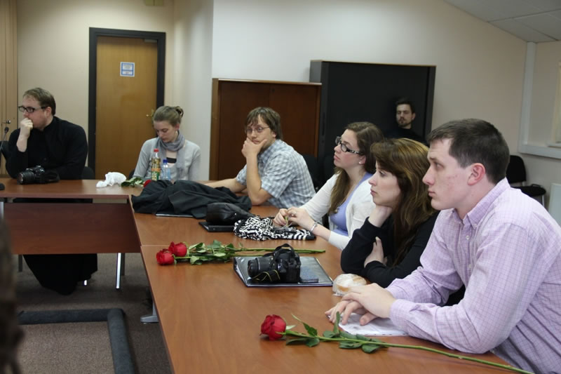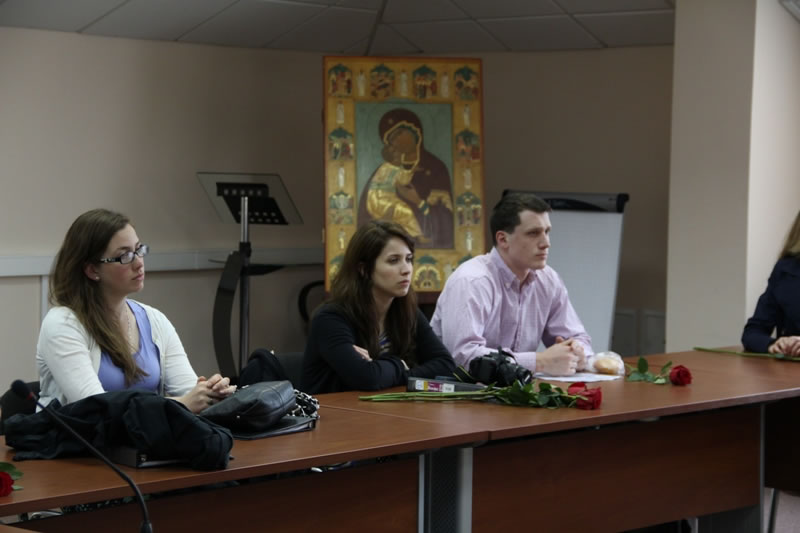 Ректор ПСТГУ протоиерей Владимир Воробьев приветствовал гостей университета: "Мы с отцом Андреем Соммером уже давно знакомы, он не первый раз привозит к нам группу православных братьев и сестер из Америки. Общение развивается и взаимно нас обогащает. Во всяком случае, это общение лучше дает нам возможность понимать историю Церкви XX века, а главное молиться вместе друг с другом".