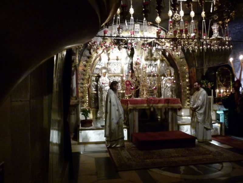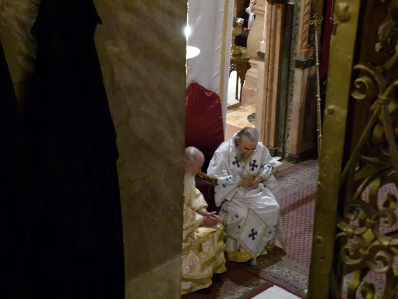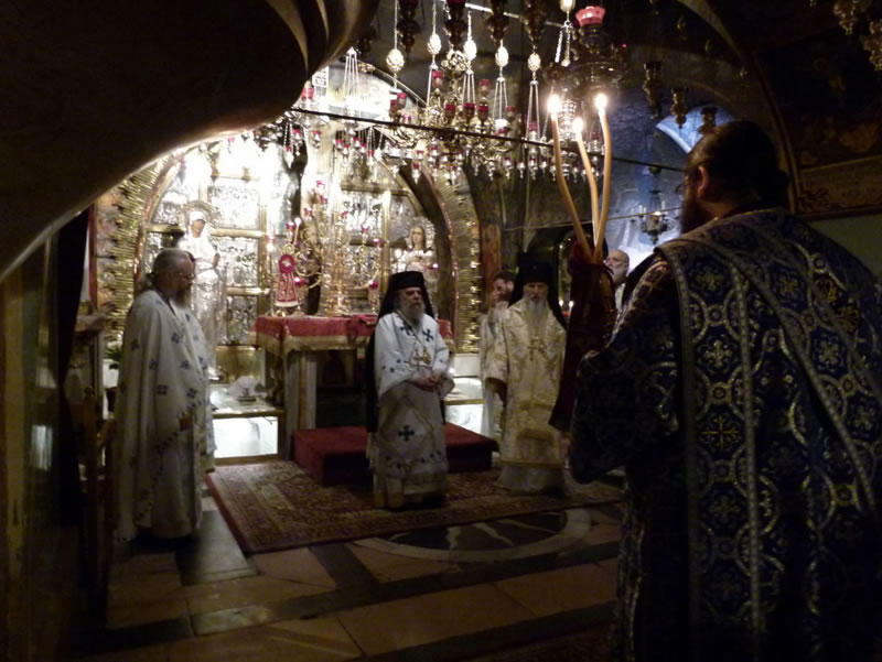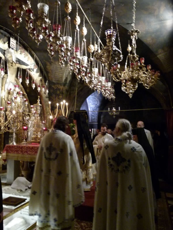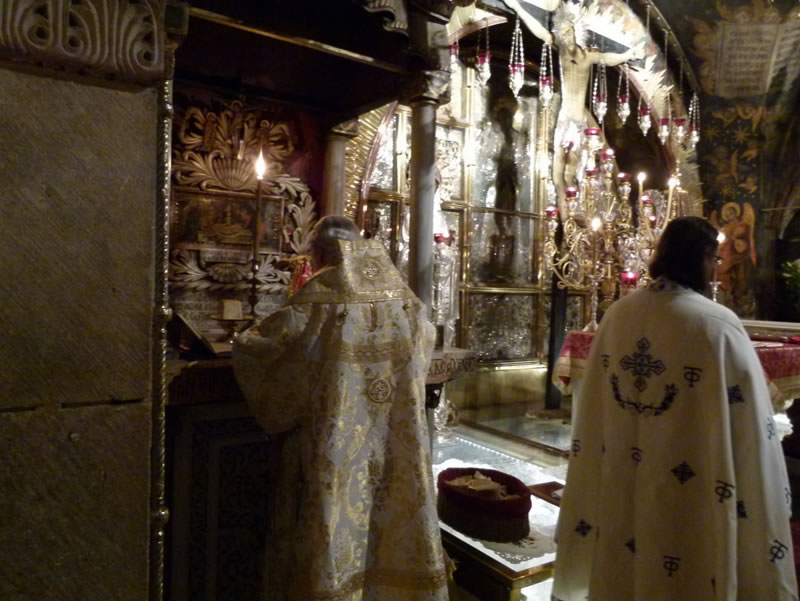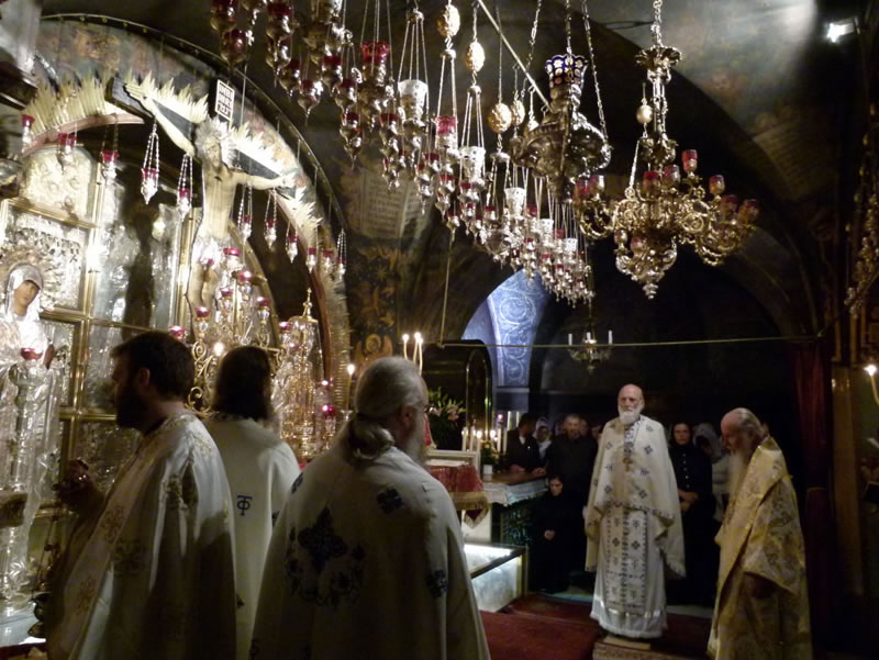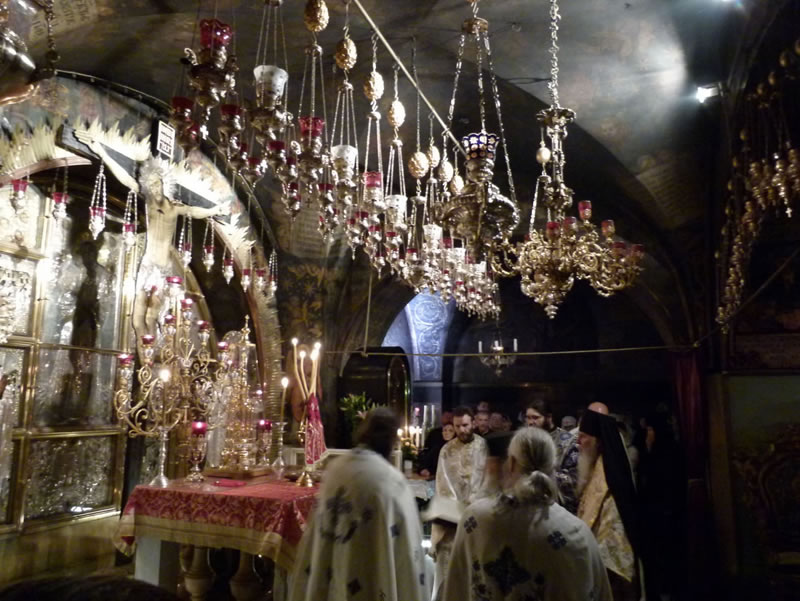 В ночь с четверга на пятницу, 14 июня, паломническая группа Германской епархии, возглавляемой архиепископом Берлинским и Германским Марком, приняла участие в умилительной ночной Божественной литургии, совершенной на Голгофе. По установленному обычаю, по пятницам в Храме Воскресения Христова во Святом Граде Божественная литургия совершается именно на Голгофе, месте распятия и смерти Господа нашего Иисуса Христа. Божественную литургию совершил архиепископ Константинский Аристарх, Генеральный Секретарь Священного Синода Иерусалимского Патриархата, в сослужении архиепископа Берлинского и Германского Марка, архимандрита Романа (Красовского), Начальника Духовной Миссии Русской Зарубежной Церкви в Иерусалиме, члены Святогробского братства и паломники в священном сане. Сначала паломники отслушали Утреню в Храме Воскресения Христова, а затем при пении Великого славословия взошли вместе с архипастырями и священнослужителями на Голгофу, где совершалась Божественная литургия. Здесь все богомольцы причастились Святых Христовых Таин.