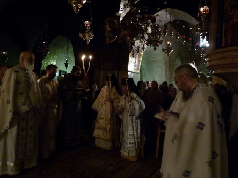 Фоторепортаж об участии паломнической группы из Германской епархии в ночной Божественной литургии на Голгофе